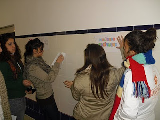 Durante toda la mañana los alumns@s salieron de sus aulas, de forma escalonada, para pegar en las paredes del edificio poemas de autores como Neruda y Bécquer.