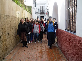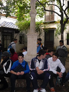 El pasado 14 de Enero los alumnos de 3º curso de la ESo acompañados por la profesora de Lengua y Literatura Lola Zamudio y el coordinador del Plan Lector y Dinamización de la Biblioteca Antonio Moyano acudieron a Sevilla para asistir a la adaptación de la clásica obra del Lazarillo de Tormes en la facultad de la Politécnica sita en la calle Niebla(Triana). Con ocasión de tal evento aprovechamos también para realizar una ruta literaria dedicada a Cervantes, paseando por la barriada centrica del Arenal, calle Betis, además de tipicas plazuelas sevillanas alrededor de la catedral.