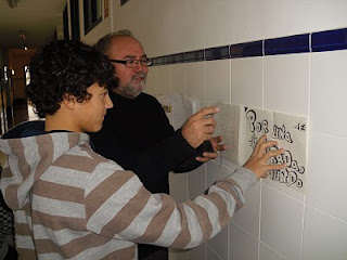 Durante toda la mañana los alumns@s salieron de sus aulas, de forma escalonada, para pegar en las paredes del edificio poemas de autores como Neruda y Bécquer.